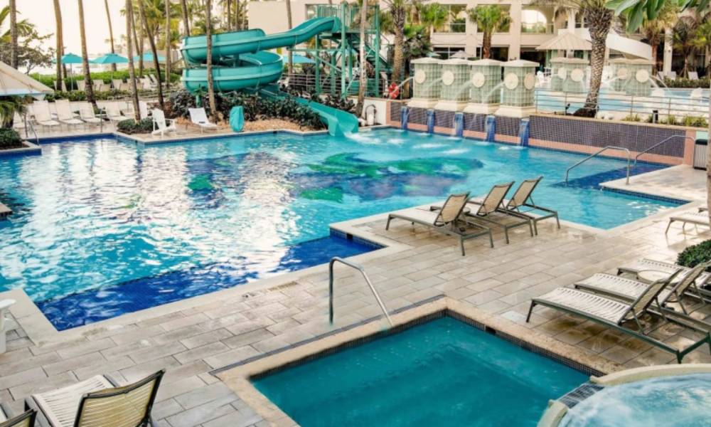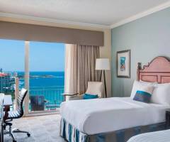 El hotel de cuatro estrellas The San Juan Marriott Resort ofrece a sus huéspedes el marco perfecto para unas relajantes vacaciones en un resort frente al mar. la experiencia vacacional definitiva en el resort frente al mar. El hotel dispone de 527 habitaciones, cada una de las cuales está equipada con aire acondicionado, mininevera, escritorio, caja fuerte, servicio de café y té. escritorio, caja fuerte, cafetera y tetera, TV con canales vía satélite. canales vía satélite. Todas las habitaciones del hotel tienen balcón o veranda con vistas a la ciudad, la playa, el océano o la piscina, grandes ventanales de suelo a techo, cuarto de baño. cuarto de baño. El acceso a Internet es de pago. También se puede aparcar el coche en el aparcamiento del hotel por un suplemento.