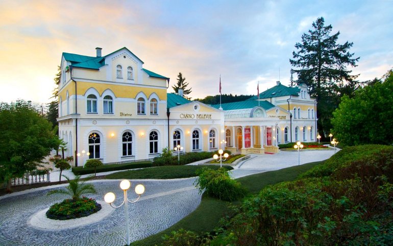 El Casino Bellevue Marienbad está considerado uno de los casinos más bellos de Europa, y esta apreciación parece acertada. El edificio, construido en 1835 en estilo neorrenacentista italiano, está situado en una colina que domina la ciudad y ofrece una espléndida vista del pintoresco balneario y el parque cercano.