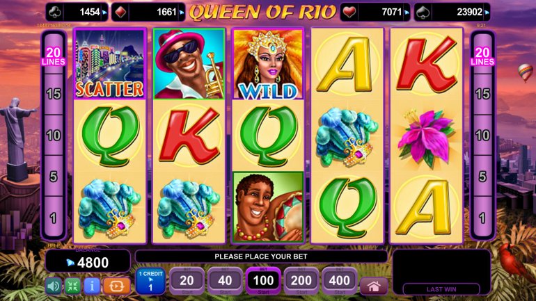 EGT desarrolló el juego que se comenta a continuación. La tragaperras Queen of Rio está diseñada al estilo de su tema y agrada a los jugadores con alegres animaciones e increíbles efectos musicales. Tiene scatters, wilds y rondas de giros de bonificación con comodines apilados en todas las columnas.