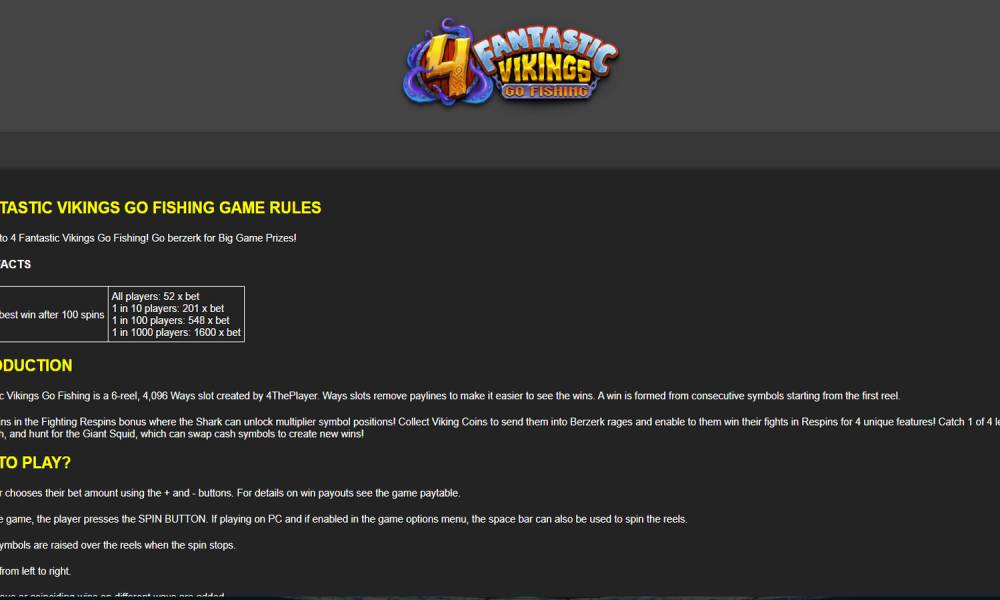 Conclusión del Editor: 4 Fantastic Vikings Go Fishing es definitivamente un juego obligatorio tanto para el jugador novato como para el experimentado. Es una ranura con un conjunto inusual, variada e interesante de características de la prima.