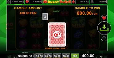 En la ronda Gamble, el usuario puede probar su suerte. Si adivina el color de la carta (rojo o negro), recibirá el doble de las ganancias de la tirada. Si se equivoca, la cantidad se quemará. En total, no puede ganar más de cinco veces y hasta alcanzar el premio máximo, prescrito en el menú.