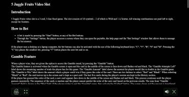 En la tragaperras 5 Juggle Fruits del proveedor Amusnet, los usuarios se sumergirán en la época de las primeras máquinas tragaperras. La tragaperras tiene un pequeño campo de 3 rodillos con 3 filas cada uno. El número de líneas de pago es fijo y también pequeño. ¿Qué hay de interesante en un juego así? El hecho de que los pagos son muy grandes. Una combinación puede superponerse a docenas de tiradas jugadas. Y si a esto añadimos los botes progresivos, queda claro por qué la máquina interesa a los usuarios. Ellos esperan un buen retorno y grandes ganancias, pero que finalmente tendrá suerte, depende únicamente de la Señora Suerte.