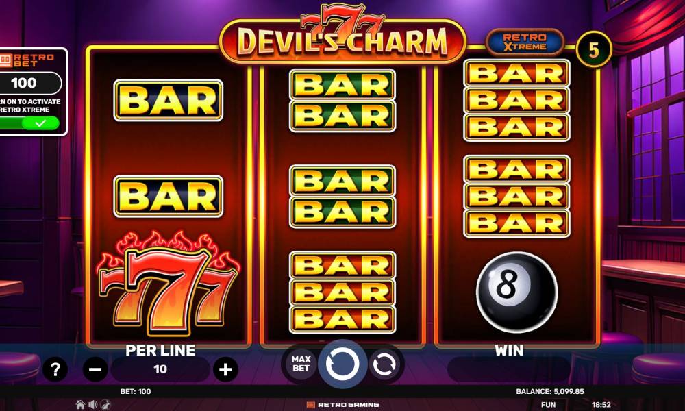 La tragaperras 777 Devil's Charm tiene unas reglas bastante sencillas. Sin embargo, debes entender la opción Retro Bet para evitar decepciones. La ayuda del juego te dirá lo mínimo, pero es mucho mejor que te tomes tu tiempo para jugar a la demo. En este caso, no habrá problemas para encontrar los botones adecuados, apostar, etc. Además, en la práctica es muy fácil determinar si merece la pena pasar a las apuestas reales.