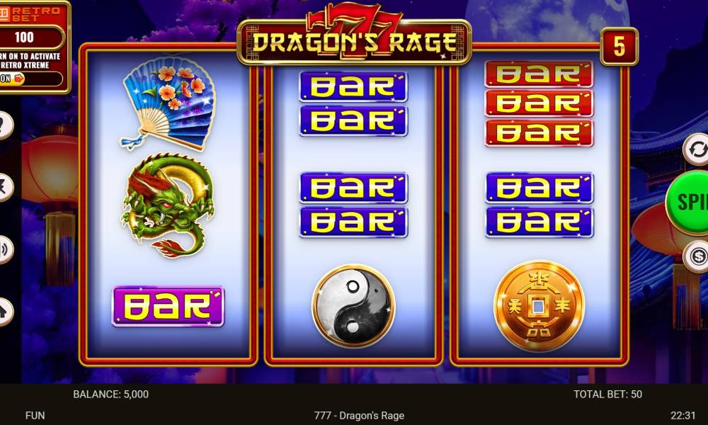 El resultado de otra exitosa colaboración entre Retro Games y Spinomenal es la tragaperras 777 Dragon's Rage. La máquina tragaperras impresiona en primer lugar por su componente visual, está en la cima de su juego. Jugar en una tragaperras online diseñada por profesionales es muy divertido.
