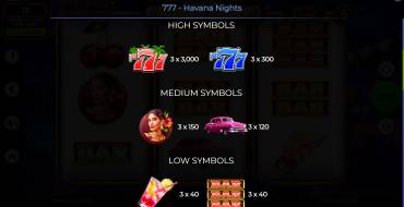 Incluso las tragaperras clásicas necesitan una demo. En 777 - Havana Nights juego de tragaperras en la demostración le permitirá comprender el supersímbolo, la influencia de la apuesta adicional en la tabla de pagos, para estudiar la interfaz. No es importante será la decisión sobre el atractivo de esta máquina tragaperras, porque los clásicos no son para todos.