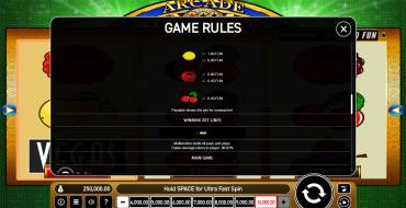 La tragaperras Arcade es una tragaperras online clásica con tres rodillos y una línea de pago. Las combinaciones ganadoras se forman cuando coinciden tres símbolos idénticos en la línea, empezando por el primer rodillo. El rango de apuestas varía de 0,2 monedas a 10000 monedas por tirada, lo que permite a los jugadores elegir un nivel de riesgo cómodo. La ganancia máxima es de 409x el importe apostado. La tragaperras también cuenta con un juego de riesgo, en el que después de cualquier ganancia, el jugador puede doblar la cantidad adivinando el color de la carta.