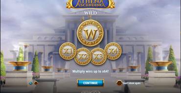 En la tragaperras online Athena Ascending el campo tiene dimensiones clásicas de 5x3, sin expansiones. En el juego participan 3 símbolos especiales y 10 símbolos de fila. Las combinaciones se realizan de izquierda a derecha, para ganar se necesitan 3 símbolos idénticos. La tasa se selecciona de un rango de 0,05 a 100 c.u. con un incremento máximo en x10000. Durante el modo de juego regular es posible que caigan multiplicadores, la acción de los bonos aumenta durante los freespins, ya que tienen una cuenta atrás.