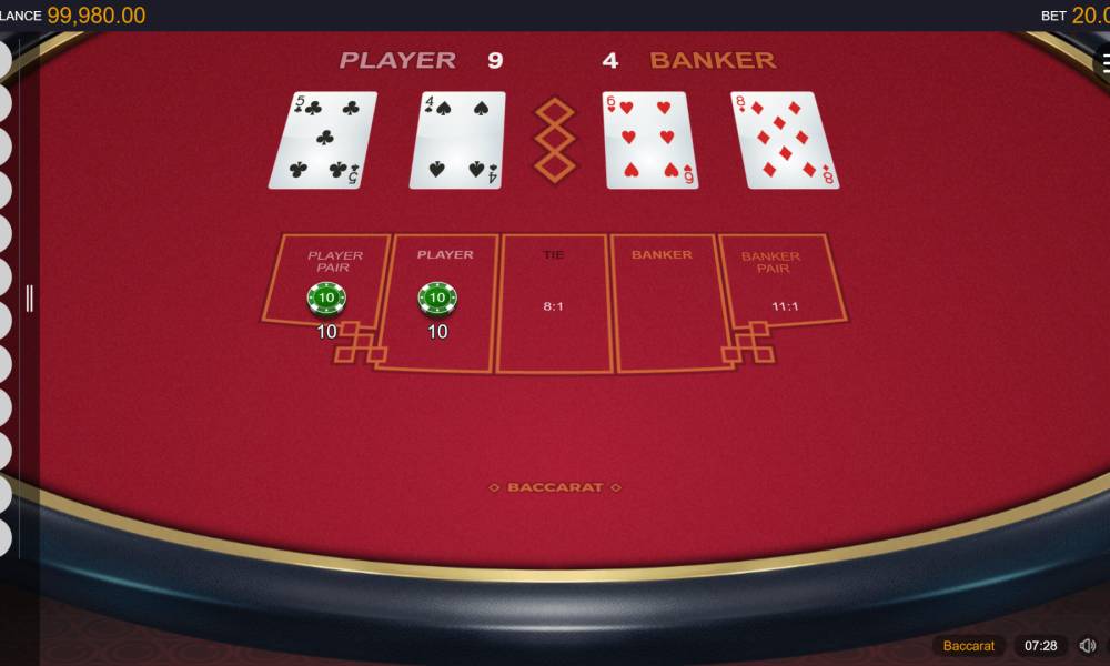 Switch Studio y Microgaming han presentado el baccarat online, que lleva este juego a un nuevo nivel. Presenta las reglas clásicas del minibaccarat complementadas con características inusuales. Puede "tirar" de las cartas, realizar apuestas de bonificación y ajustar varios parámetros.