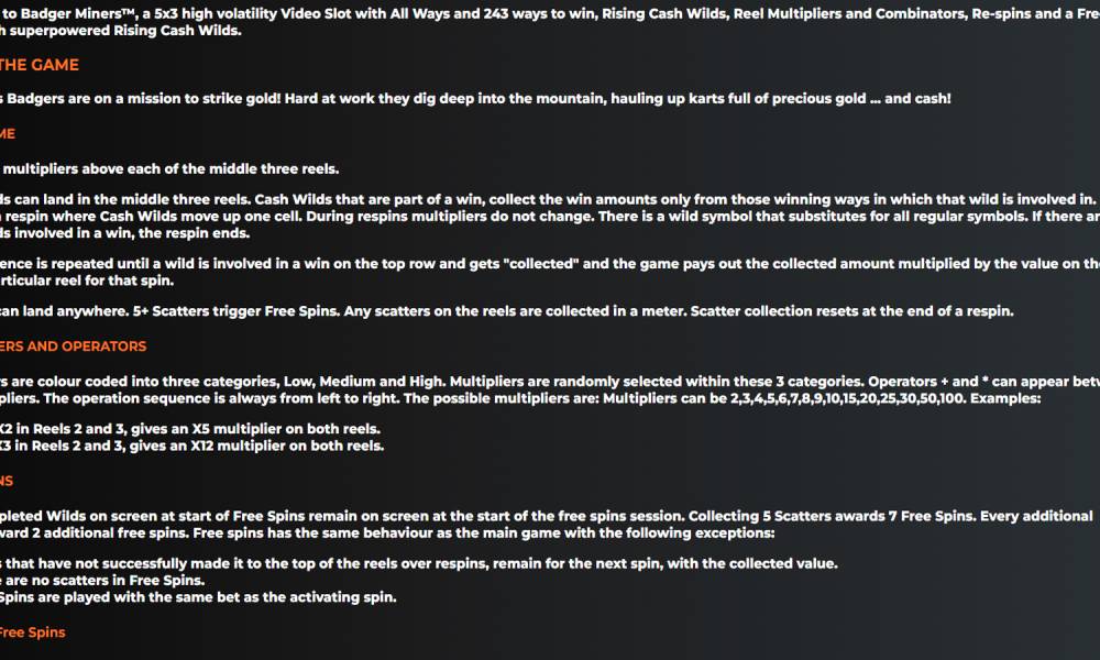 | Badger Miners | Joker Spin | Rabid Randy Dark Trails | Thunder Blitz | |