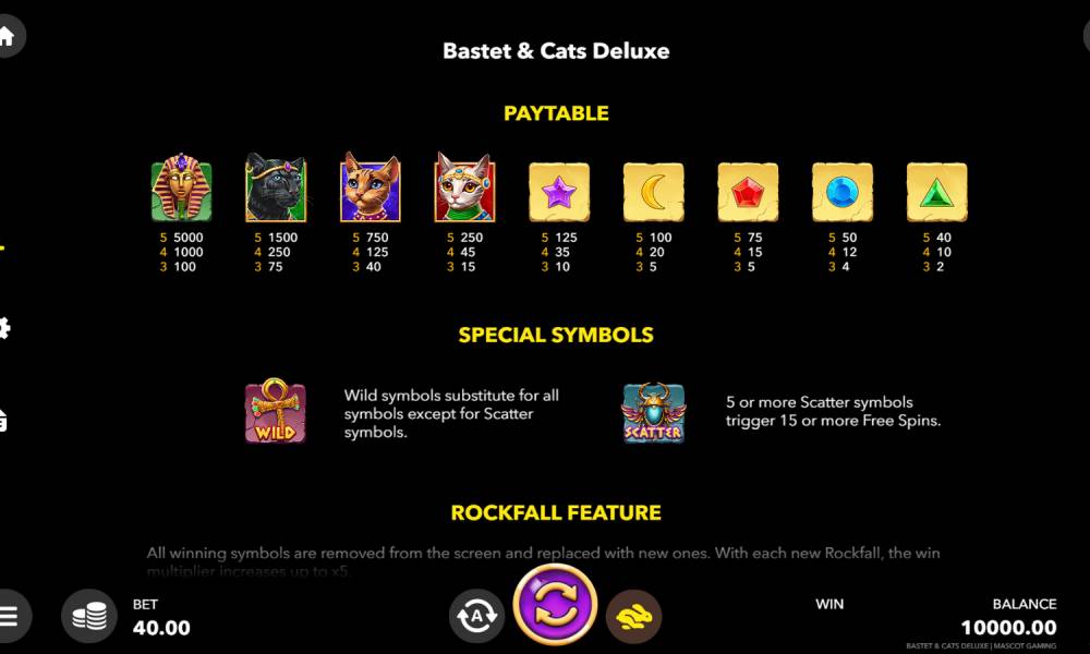 Las reglas de las funciones de bonificación de Bastet and Cats Deluxe son: