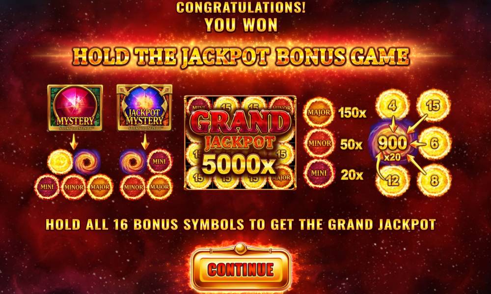 Los símbolos Mystery y Jackpot Mystery permanecen en los rodillos hasta el final de la ronda de bonificación, aumentando las posibilidades de obtener grandes ganancias.