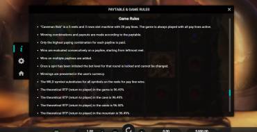 Familiarizarse con las reglas. Se presentan en el menú. También hay datos generales sobre la máquina, tabla de pagos, parámetros básicos del juego.