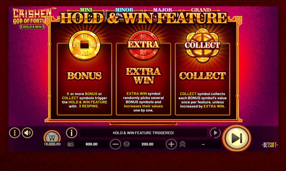 Chaisen: God of Fortune - Hold and Win es una tragaperras de temática oriental producida por Betsoft. La máquina nos lleva a otro país y nos da la oportunidad de sentir toda la gama de emociones - alegría, frustración, descontento, miedo, emoción, inspiración, deleite. Aburrido en ella definitivamente no será, porque cada giro trae algo nuevo - símbolos adicionales, bonos, más premios. Máquina tragaperras da la oportunidad de ganar grandes premios. ¿Quieres comprobar lo genial que es? Inicie la ranura en línea ahora y esperar el favor de Lady Luck, porque sin ella en el mundo de los juegos de azar es ninguna parte.