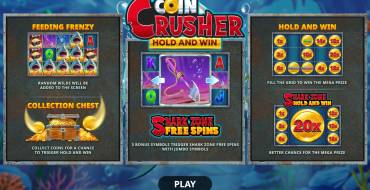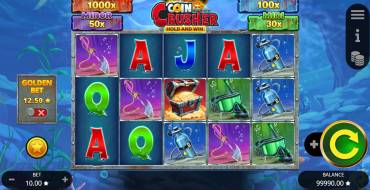 La tragaperras Coin Crusher tiene un campo de juego de 5 rodillos con una altura de 3 casillas cada uno. En total hay 20 líneas fijas para hacer combinaciones. El conteo de signos se realiza de izquierda a derecha. La gama de apuestas va de 0,25 a 250 euros, el jugador tiene que elegir entre opciones ya preparadas. Hay 8 regulares y 3 símbolos especiales utilizados en los giros. Para las bonificaciones son responsables de giros gratis con respins, sin multiplicadores adicionales. Es posible activar la función aleatoria Feeding Frenzy. La ganancia máxima está limitada a x2000 de la apuesta, que es un valor muy pequeño para la alta volatilidad. Quizá se revise con el tiempo. La tragaperras tiene una apuesta extra y bonos de buy-in.