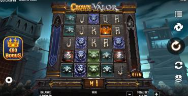 La tragamonedas de vídeo Crown of Valor tiene 5 rodillos en 5 filas y un sistema de pago en racimo. La mecánica de rollover, cada vez que se crea una combinación ganadora, elimina los símbolos jugados y lanza otros nuevos. En este caso, todos los pagos posteriores de una ronda se añadirán a las ganancias recibidas. Si no hay más combinaciones ganadoras, los rollovers se detienen. Una combinación ganadora debe incluir más de 5 símbolos idénticos. Si aparecen 5 o más símbolos del mismo nombre en los rodillos, la apuesta se multiplica por un determinado multiplicador. Todos los valores del multiplicador aparecen en la tabla de pagos. El multiplicador máximo promete al caer más de 12 símbolos de la Corona - x250 a la apuesta. El rango de apuestas - 0,20-100 euros.