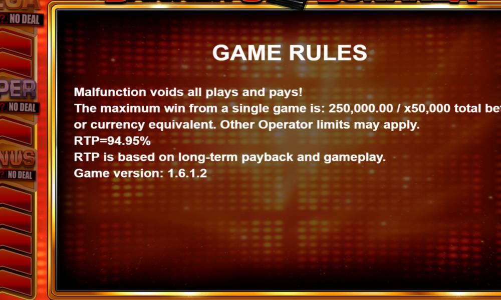 La tragaperras Deal or No Deal: Banker's Bonanza de Blueprint Gaming es una tragaperras única inspirada en el popular programa de televisión Deal or No Deal. El juego destaca por el uso de la mecánica Pay Anywhere, en la que ocho o más símbolos idénticos que caigan en cualquier lugar de los rodillos es suficiente para ganar. Un impulso adicional lo dan las rondas de bonificación, en las que el usuario tiene que abrir cajas. El juego es intrigante y fascinante, es difícil separarse de él.