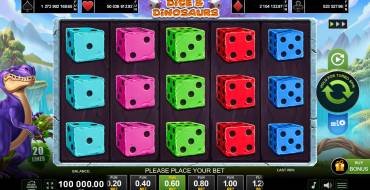 Al entrar por primera vez en la tragaperras online Dice&Dinosaurs es mejor familiarizarse inmediatamente con las reglas. Se presentan en el menú, también hay tabla de pagos, líneas ganadoras y descripción de las características. Después de estudiar la información puedes empezar el juego: