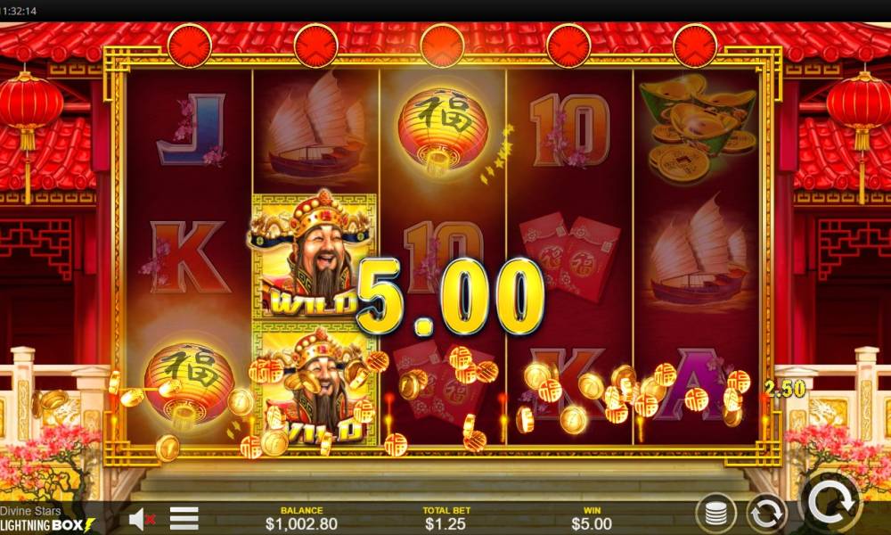 El proveedor Lightning Box presentó al mundo la tragaperras Divine Stars en 2022. Está hecha en el tema chino, todos los símbolos son apropiados. Hay líneas de pago fijas y una mecánica estándar de giros de carrete. La tragaperras interesará a los jugadores que quieran conseguir un gran premio. Es emocionante, por lo que incluso una racha de fracasos no molesta, porque es agradable de jugar, y una gran puntuación está esperando por delante. El proveedor creó dos funciones especiales que ayudan a los jugadores a girar los rodillos gratis y ganar premios al mismo tiempo. Multiplicadores, bonificaciones, símbolos especiales: todo esto atrae y mantiene a los usuarios.