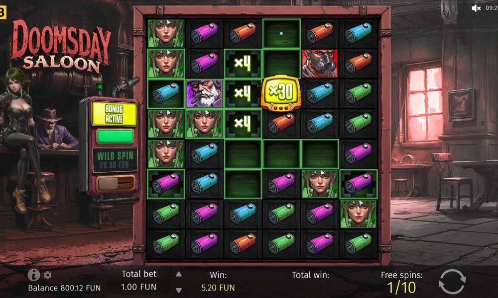 La tragaperras Doomsday Saloon de BGaming está diseñada con el espíritu postapocalíptico tan de moda en la actualidad. El salón más elegante y peligroso de una de las últimas ciudades humanas atrae a aventureros de toda la zona.
