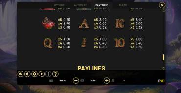 La tragaperras online ofrece 5 rodillos en 4 filas y 40 líneas de pago fijas.