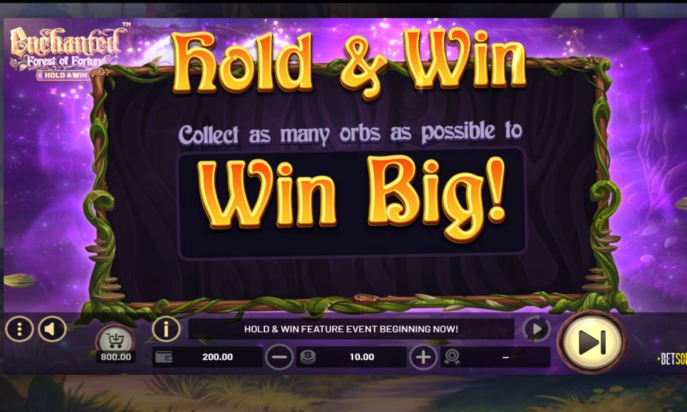 La tragaperras online Enchanted: Forest of Fortune Hold&Win tiene un modo de juego bastante sencillo. Los rodillos están situados en el centro del campo de juego sobre el fondo de un bosque mágico. En la parte inferior de izquierda a derecha se sitúan los botones de menú, música, apuesta, inicio de tiradas. También al lado hay una imagen de un carro, que actúa como bono de compra. Para empezar a jugar, simplemente