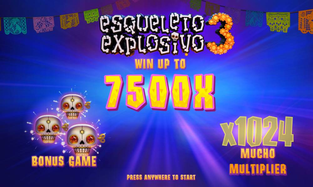 Thunderkick ha dado una original interpretación a la tradicional celebración del Día de los Muertos en su tragaperras online Esqueleto Explosivo 3. El juego no te permite estar triste, presenta simpáticos esqueletos cambiando calaveras, tocando instrumentos musicales y cantando. La extravagancia va acompañada de símbolos Wild que explotan, pagos en cascada, multiplicadores crecientes y tiradas gratis con repeticiones, que prometen grandes ganancias de hasta un máximo de 7.500 veces tu apuesta.