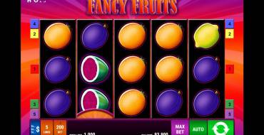 Puede seleccionar la opción Bet Max - "apuesta máxima" con la expectativa de una ganancia mayor. Características de bonificación Fancy Fruits no estropea, la ranura ni siquiera tiene tales adiciones simples, tales como comodines y símbolos Scatter. Tampoco hay tiradas gratis.