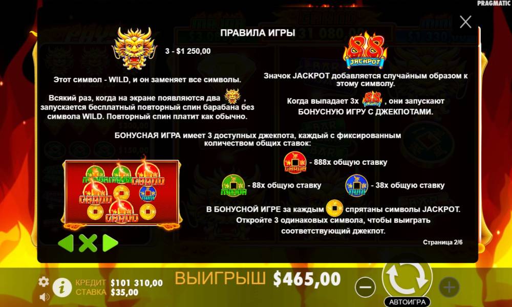 | La tema | Oro, Dragones, Carnaval, Ranuras clásicas |