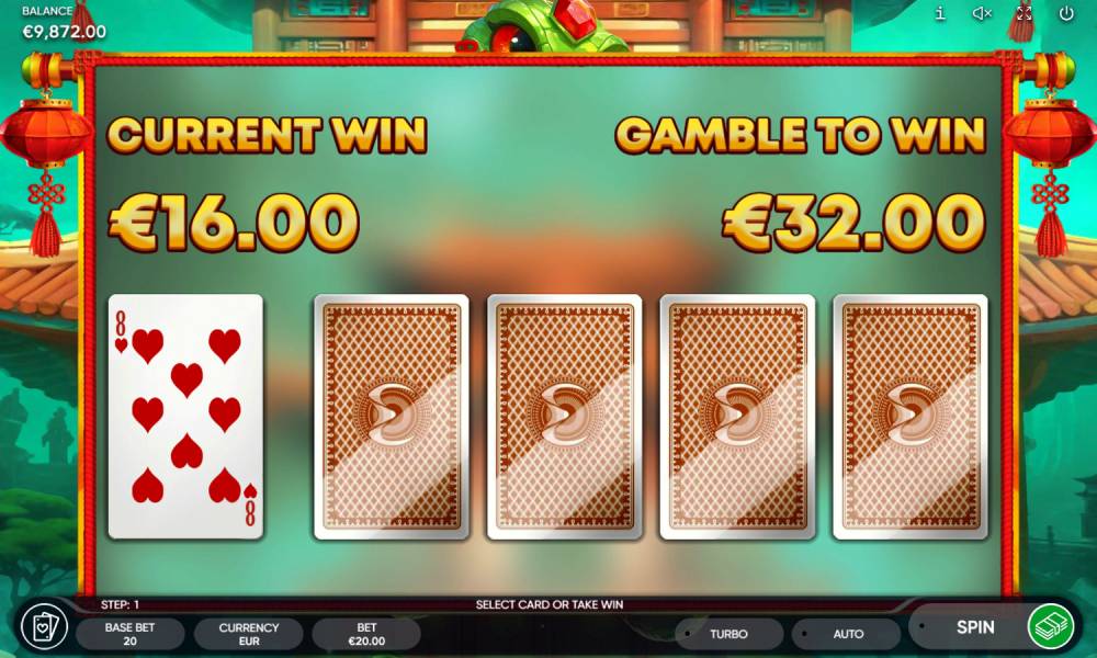 Juego de riesgo. Adivinación clásica de cartas, una de 4 cartas. Si la carta revelada supera a la del repartidor, las ganancias se duplican. De lo contrario, se cancela el pago. Cada cantidad ganada no puede apostarse más de 10 veces. El jugador tiene derecho a dejar de arriesgar en cualquier momento y recuperar su dinero.