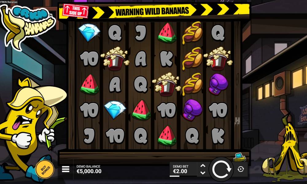 Últimamente, el estudio Hacksaw Gaming ha estado ofreciendo máquinas tragaperras bastante sencillas con mecánicas populares. La tragaperras online FRKN Bananas se ajusta bastante bien a estos criterios. Ofrece un amplio campo de juego con rodillos altos, tiradas gratuitas y un sistema de multiplicadores.