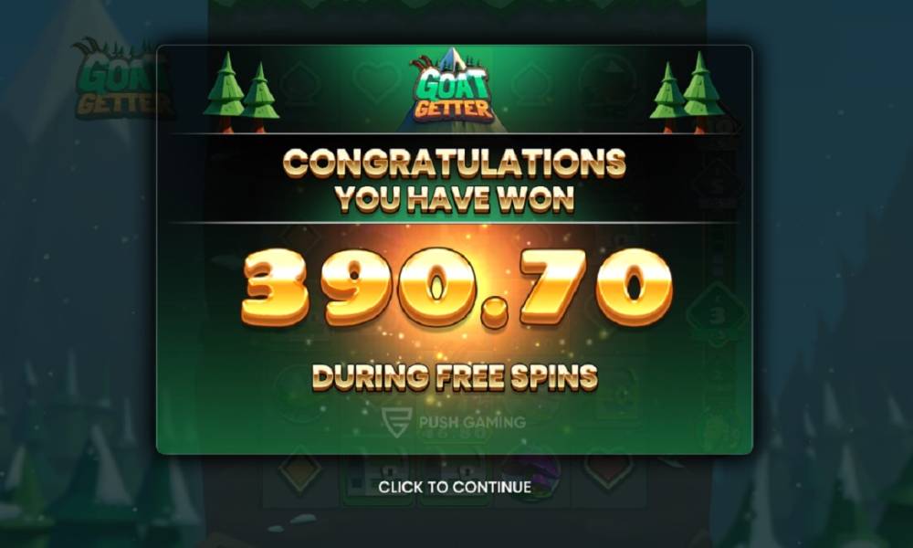 El Goat Getter es un juego de dispersión Pay Anywhere en el que se conceden recompensas cuando aparecen al menos seis símbolos iguales en cualquier lugar. Los cofres rojos, morados y verdes son los de mayor valor, mientras que las setas de cristal y los huevos pagan la media. Los bajos son los símbolos de cartas tradicionales: picos, corazones, tréboles y diamantes.