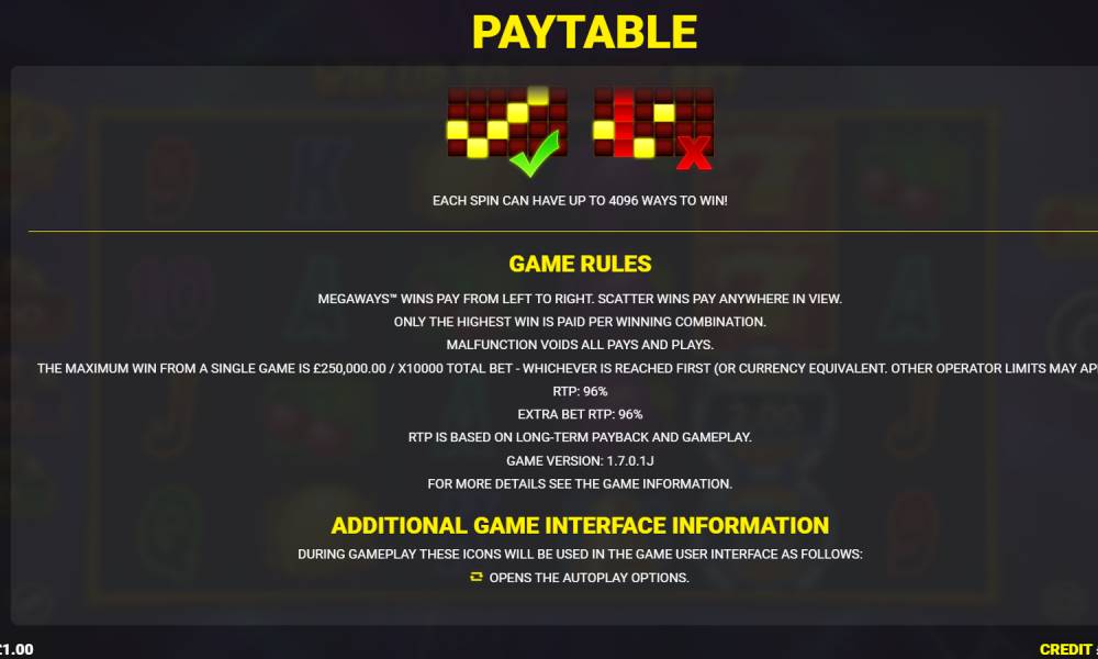 La tragaperras online ofrece 6 rodillos en 4 filas y 4.096 líneas de pago no fijas.