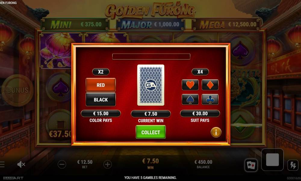 Empápese del ambiente de la tragaperras sin ningún riesgo financiero probando la versión demo de Golden Furong, ofrecida por GameArt de forma totalmente gratuita a todos los jugadores.