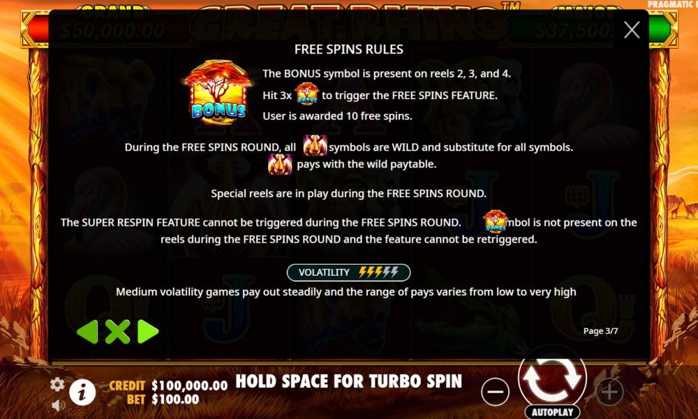 Hay más sobre los sorteos de premios de la tragamonedas de vídeo Great Rhino. Una vez que se activa la función Super Respin: