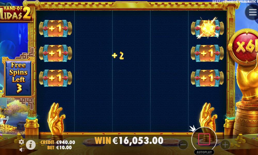 La tragaperras The Hand of Midas 2 es la secuela de la popular tragaperras de Pragmatic Play, inspirada en el legendario Rey Midas, que podía convertir en oro todo lo que tocaba. Este juego lleva a los jugadores a una habitación oscura y misteriosa llena de tesoros, donde tiene lugar la acción principal.