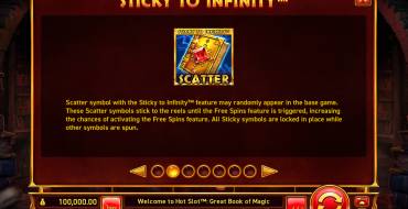 Sticky To Infinity - los símbolos de libro marcados con esta característica permanecen en los rodillos hasta que se activa el juego de bonificación, aumentando las posibilidades de activar tiradas gratuitas.