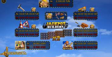 La tragaperras online Jackpot Builders es un juego con cuatro rodillos y tres filas de símbolos. Hay 9 líneas ganadoras en el campo de juego donde caen sus combinaciones afortunadas. Las ganancias se forman de izquierda a derecha en la línea activa. No hay otras opciones.