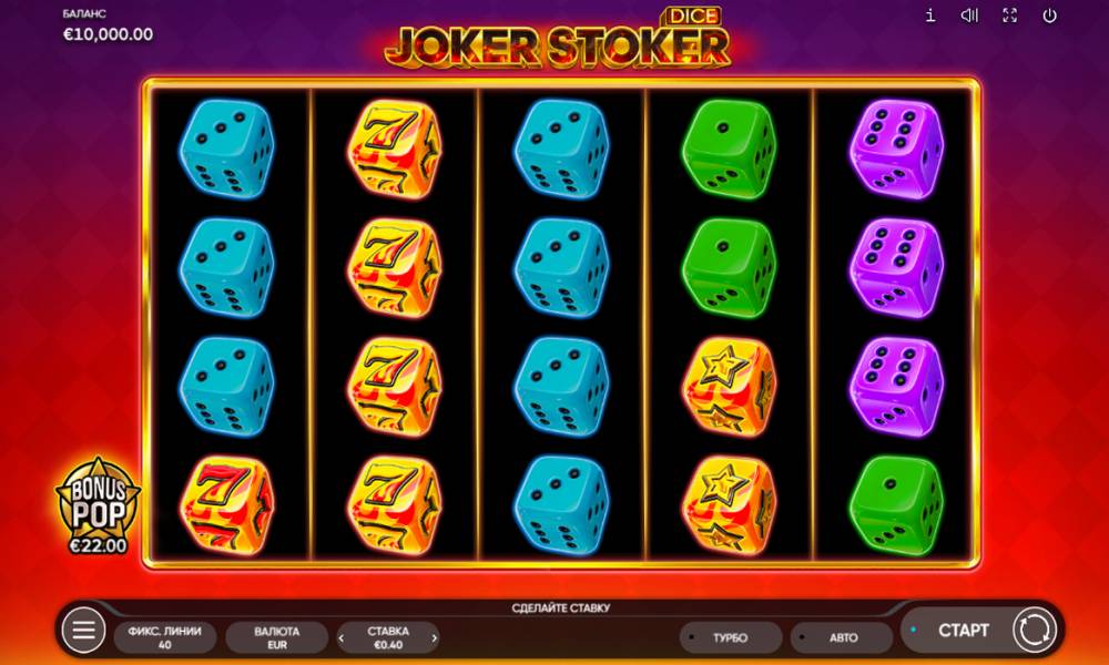 En la tragaperras online Joker Stoker Dice se han combinado con éxito los atributos favoritos de los dados y una moderna mecánica de bonificación que permite obtener excelentes ganancias. Los jugadores pueden esperar Stacked Wild en la forma del temerario Joker, una serie de giros gratis, grandes multiplicadores y un juego de riesgo tradicional con adivinación de cartas.
