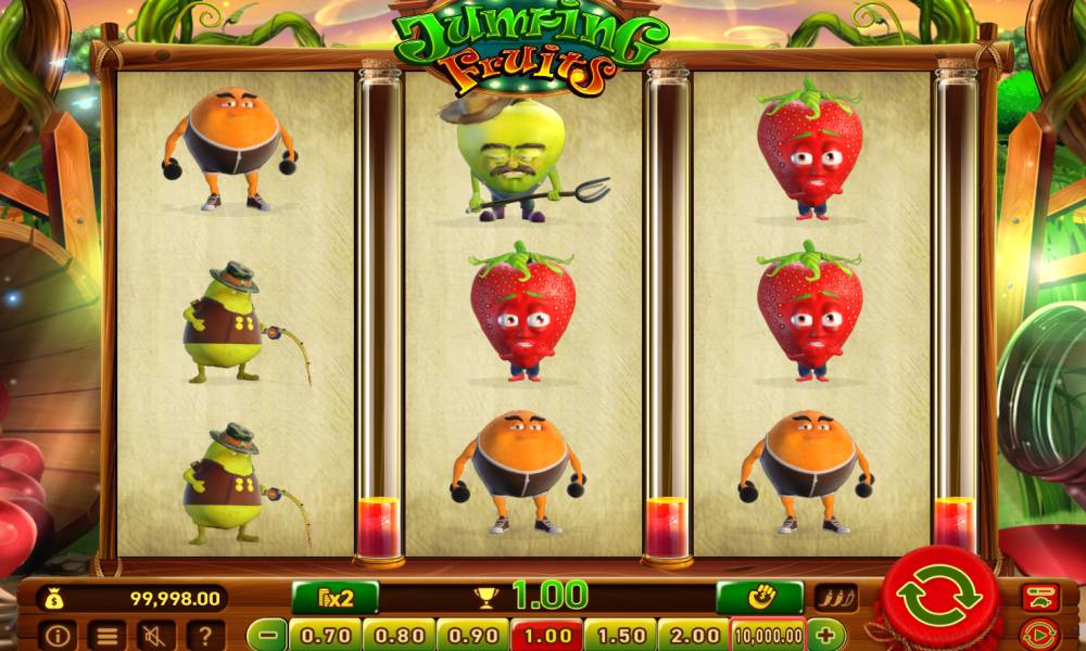 Jumping Fruits es una tragaperras de vídeo con una cuadrícula tradicional de 3x3, que consta de tres rodillos y tres filas, lo que la hace sencilla y fácil de entender incluso para los principiantes. El juego cuenta con 27 líneas de pago fijas en las que se forman combinaciones ganadoras. Para obtener ganancias es necesario que caigan los mismos símbolos en los rodillos vecinos, empezando por el rodillo situado más a la izquierda a medida que se avanza hacia la derecha. Cada símbolo tiene su propio valor, que se indica en la tabla de pagos. Si aparecen símbolos idénticos en número de tres, constituyen una combinación ganadora. Los multiplicadores aplicados a las ganancias dependen del tipo de símbolos que intervengan en la combinación. combinación.