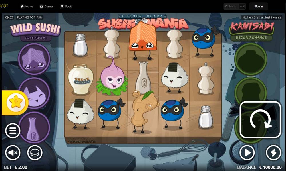 Estamos encantados con la serie de tragaperras Kitchen Drama. Se trata de una serie única de tragaperras que sumergen al jugador en el mundo de la cocina y los fogones. En concreto, Kitchen Drama: Sushi Mania sumerge al jugador en el mundo de la cocina japonesa. Los expertos de Casinoz consideran la tragaperras única por su juego temático, interesantes juegos de bonificación en general, por su funcionalidad.