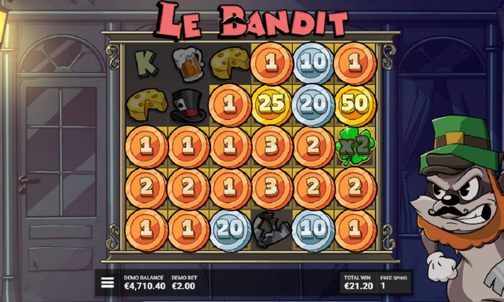 Le Bandit es una divertida tragaperras del estudio Hacksaw Gaming sobre un mapache gamberro llamado Smokey que busca tesoros por las callejuelas de París con una palanca en las patas, sin darse cuenta al principio de que tiene que ir al final del arco iris.