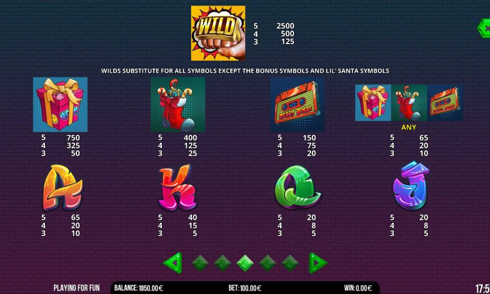 | Los juegos de bonificación | Bonus Wheel, Free Spins Bonus Game, Bonus Scatter, Lil' Santa Scatter |