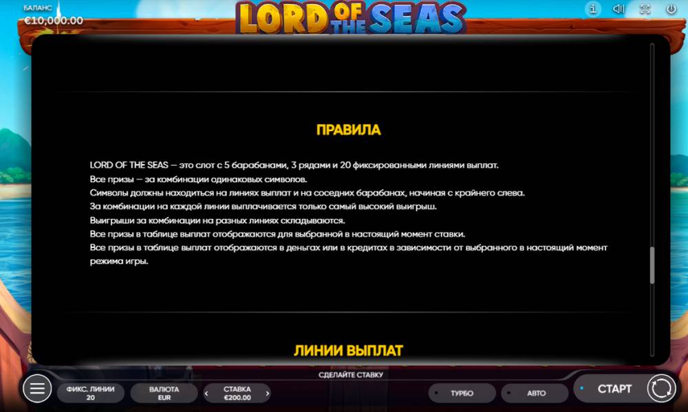 La tragamonedas de vídeo Lord Of The Seas introduce a los jugadores en un mundo de aventuras. Esta vez son los piratas quienes pasan sus días en busca de tesoros, capturando y saqueando sin piedad los barcos que pasan. Para conseguir sólidas ganancias, los jugadores tendrán que recoger balas de cañón y participar en los ataques, ya que cada cañonazo traerá consigo un símbolo Wild adicional y una importante reposición de la cuenta. Y para los aficionados al riesgo es un juego de doblar.