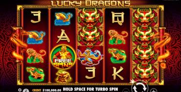 Tragaperras de temática asiática llamada Lucky Dragons lanzada por el proveedor Pragmatic Play en 2016. Paga por líneas, tiene un campo de tamaño medio, una gran ganancia máxima, pero todas las funciones de bonificación funcionan solo en tiradas gratuitas. Por lo tanto, los giros simples son monótonos. Debido al RTP medio y a la alta volatilidad, la tragaperras no paga muy a menudo. Por lo tanto, para los jugadores a los que les gusta un juego variado, es poco probable que Lucky Dragons sea interesante.