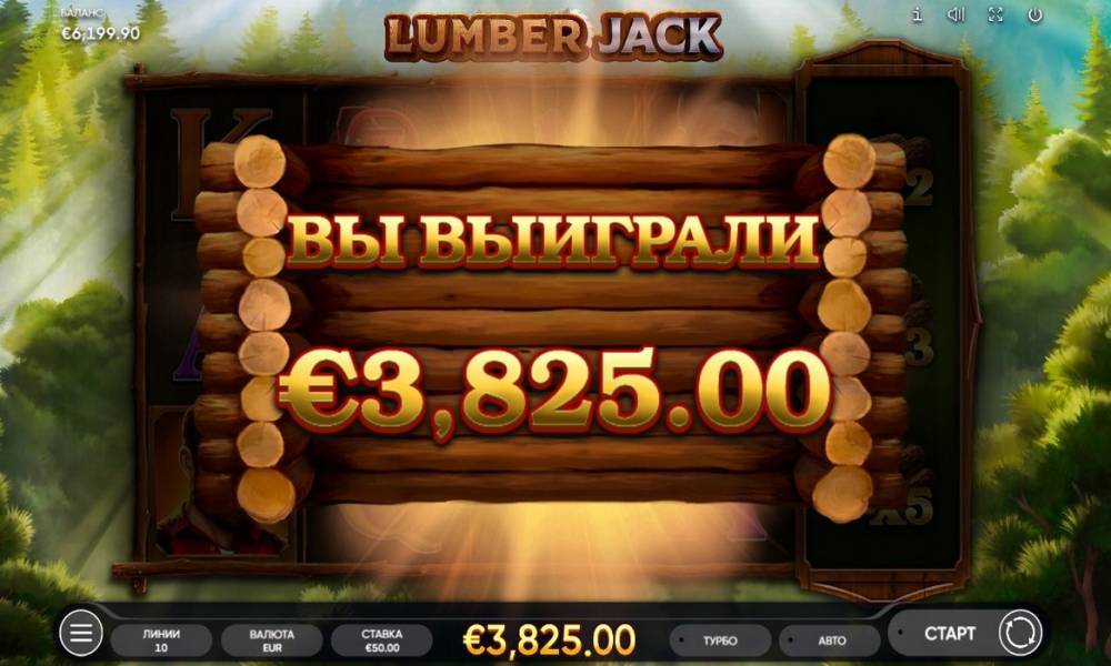 El desarrollador ha hecho todo lo posible para que jugar a Lumber Jack fuera agradable y cómodo. La parte principal del campo de juego está ocupada por los rodillos, debajo de ellos hay botones de control e información estadística. Los datos de las tablas de pagos aparecen en la esquina superior derecha, debajo del botón i. Los jugadores tienen que seguir unos pocos pasos: