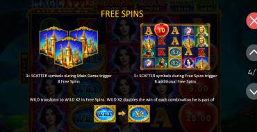 El símbolo Scatter es la imagen de un castillo. Cuando caen 3, 4, 5 piezas, da x2, x10 y x100 de la apuesta respectivamente. También activa 8 tiradas gratuitas.