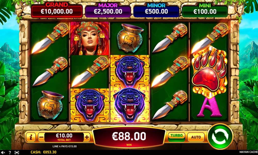 La tragaperras de temática azteca Mayan Cache ha sido lanzada por Ruby Play (con sede en Malta). Su mecánica es minimalista pero sencilla. El campo tiene un tamaño reducido: sólo 5x3, que es pequeño para las tragaperras online modernas. Dicho esto, hay varios tipos de bonificaciones que hacen que el juego sea más interesante. Visualmente, la tragamonedas se ve interesante y hermosa, las celdas grandes y los símbolos son especialmente convenientes cuando se juega en dispositivos móviles. La tragaperras se lanzó por primera vez en 2020, pero se actualizó a finales del invierno de 2024.