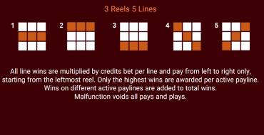 La tragaperras online ofrece 3 rodillos en 3 filas y 5 líneas de pago fijas.