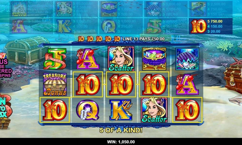 Tesoro. Se activa cuando caen 3 o más símbolos de Bonificación del Tesoro en las líneas de pago activas. El jugador tendrá que elegir varios objetos entre cofres, barriles y conchas con tesoros, que están escondidos en el fondo del mar. El número de objetos a elegir y la cantidad correspondiente dependerán del número de símbolos de activación que caigan. La función puede activarse durante las tiradas gratuitas.