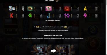Cascada Xtrema. Todos los símbolos que cayeron en una combinación ganadora durante una tirada normal o la fase de tiradas gratuitas de bonificación desaparecen, dando paso a nuevos símbolos que pueden formar parte de combinaciones ganadoras.